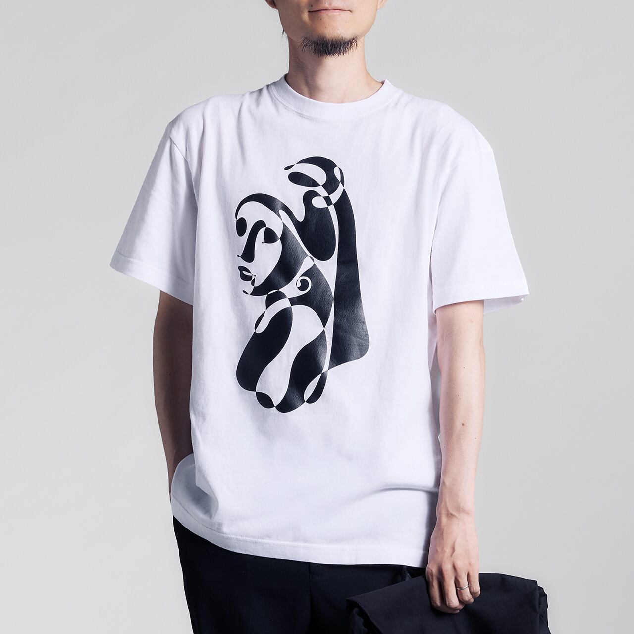 一本につながった線のみでグラフィックを描き出す【ⅠO -ichiwa-】シリーズのTシャツ。