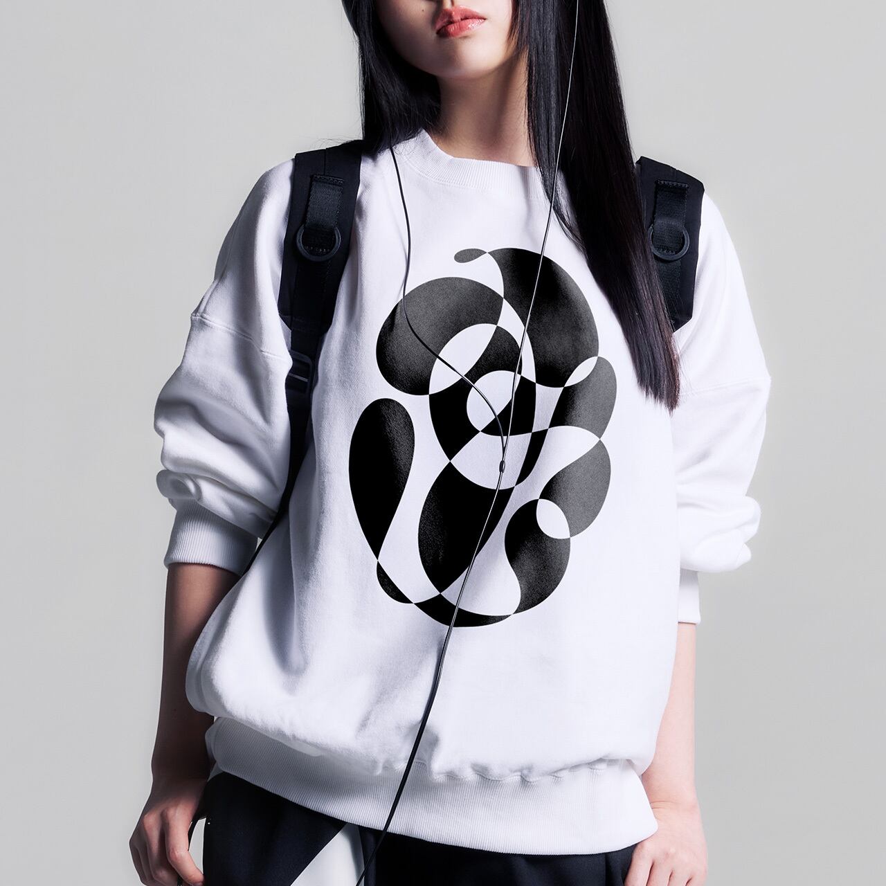 一本につながった線のみでグラフィックを描き出す【ⅠO -ichiwa-】シリーズのスウェット。