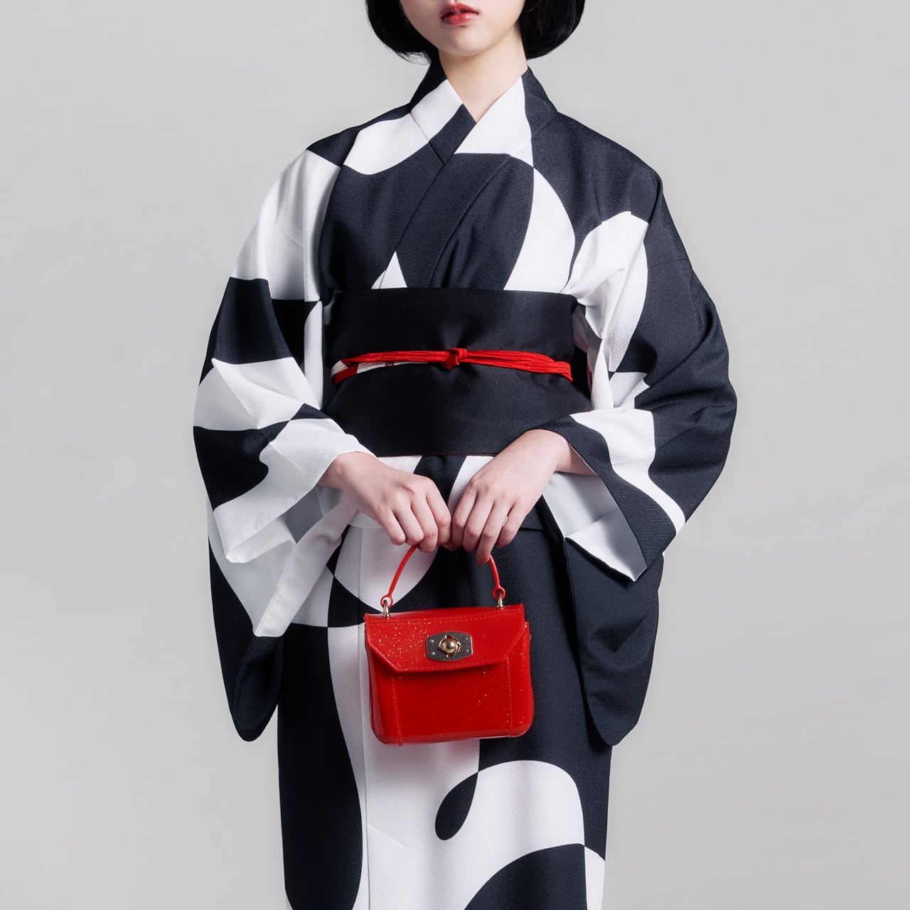 一本につながった線のみでグラフィックを描き出す【ⅠO -ichiwa-】シリーズのお着物。